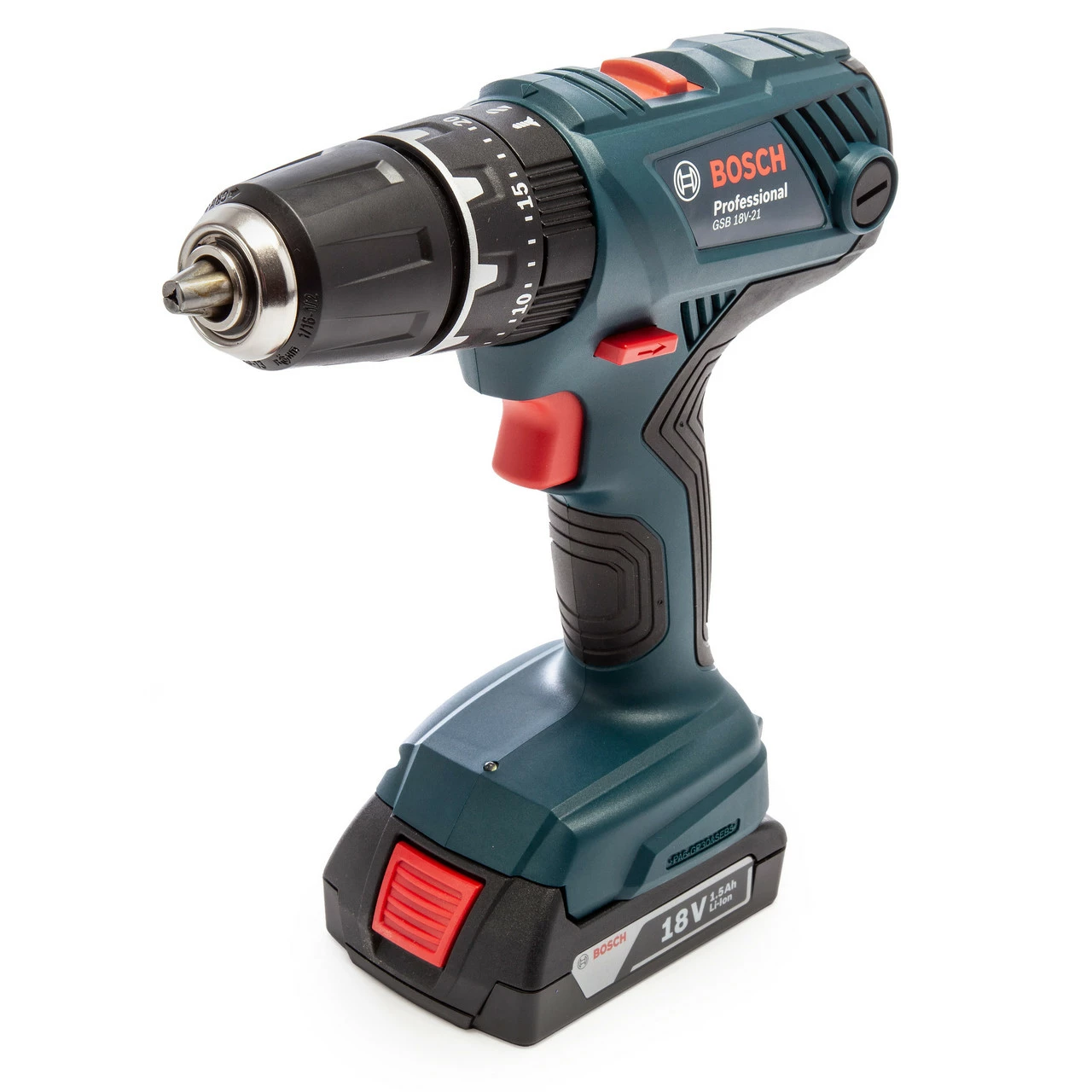The Bosch GSB 18V-21 Combi Drill has sufficient performance and runtime for all main applications in metal, concrete and wood and is extremely reliable and robust. It has been designed for professional applications thanks to its 13mm, fully metal, keyless chuck which enhances performance and ensures long life. This tool is intended for drilling in wood with a maximum diameter of 35 mm, in steel up to 13 mm, and for screw diameters of up to 10 mm. Its impact drilling function also makes working in masonry at up to 10 mm possible. It is compatible with all Bosch Professional 18 V batteries and chargers (Professional 18V System). Comes with 2 x GBA 1.5Ah Batteries, GAL 18V-20 Charger and a Carry Case.