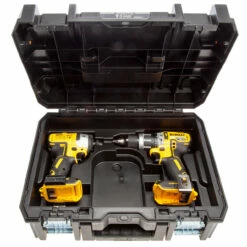 The Dewalt DCK266T Kit consists of the Dewalt DCD796 Compact Hammer Drill Driver featuring 2nd generation brushless technology for 30% more power and excellent efficiency. The overall length has been reduced to 174mm for an even more compact feel. Also included is the DCF887 Impact Driver which has 205nm of Torque, 28% more powerful than its predecessor the DCF886. Precision drive on speed 1 gives you more control on smaller screws. Both tools are sold as Body Only without batteries or charger in a TSTAK Box.