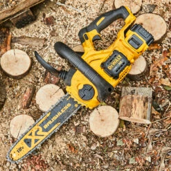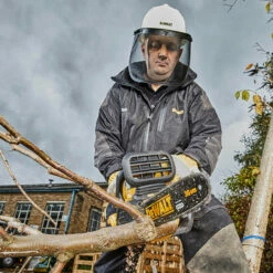 The Dewalt DCM565N 18V Chainsaw is fitted with a Brushless Motor for improved power and run-time, capable of producing up to 140 cuts per battery charge (with 5.0Ah battery). This model boasts a chain speed of 7.68 metres per second. Because the speed is just under 8 metres per second, you don’t need a certificate to buy this machine making it ideal for home garden use. This model has an automatic oiling feature for reduced maintenance and a tool-free bar fitment for fast chain adjustments. The extensive over mould increases comfort upon use.