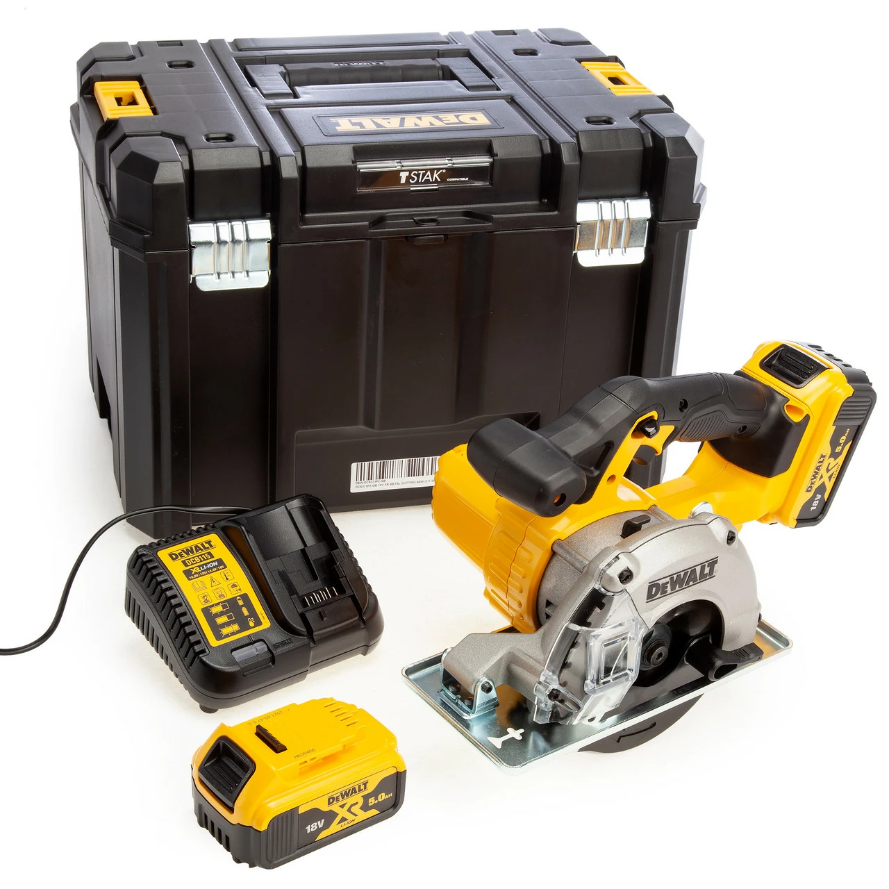 The Dewalt DCS373 Saw has a robust cool-running 140mm, 30 tooth tungsten carbide tipped blade for burr-free cuts at constant 43mm cutting depth throughout the life of the blade. The DCS373P2 model comes with 2 x 5.0Ah Batteries, DCB115 Charger, a Tungsten Carbide Blade and Hex Key in a Stackable TSTAK Box.