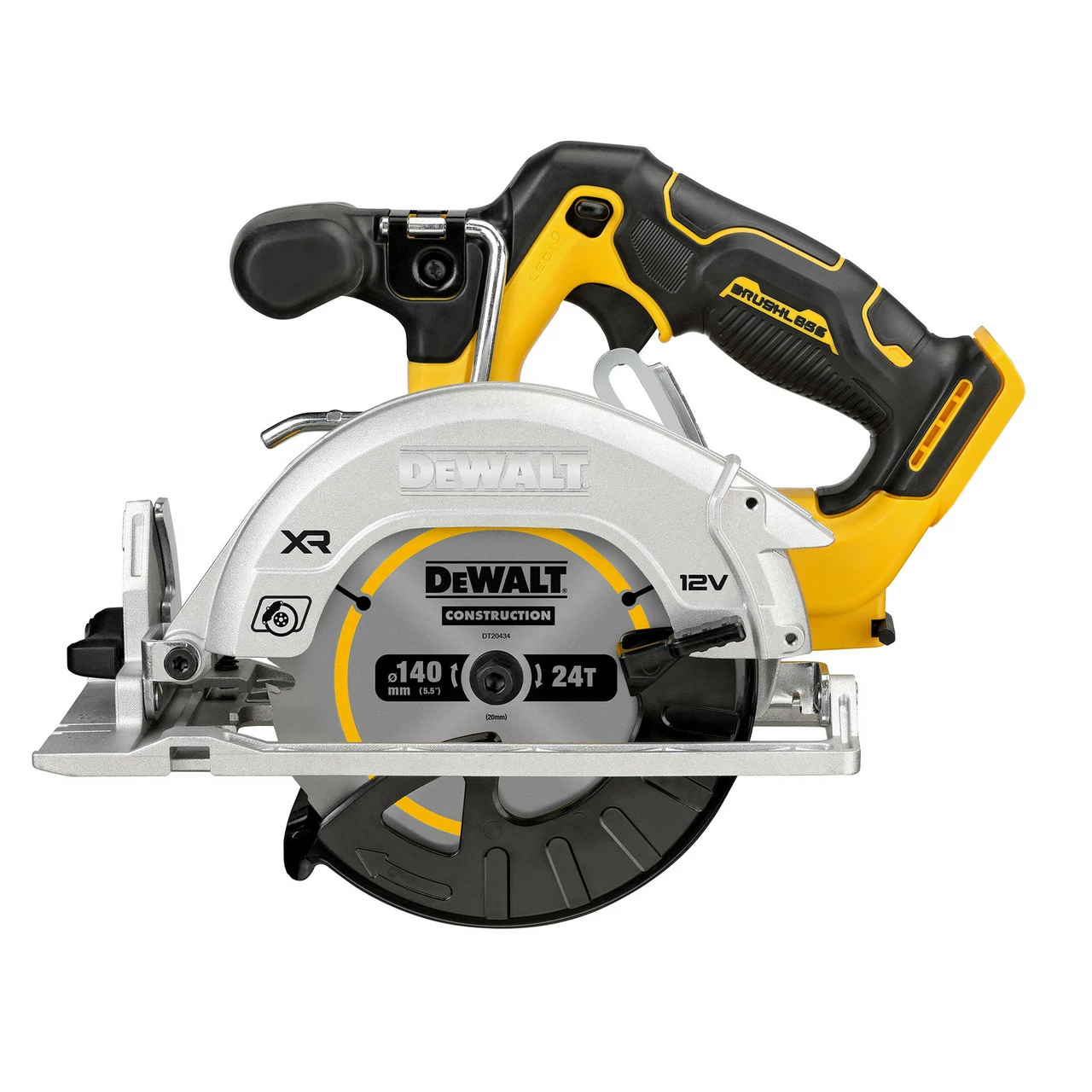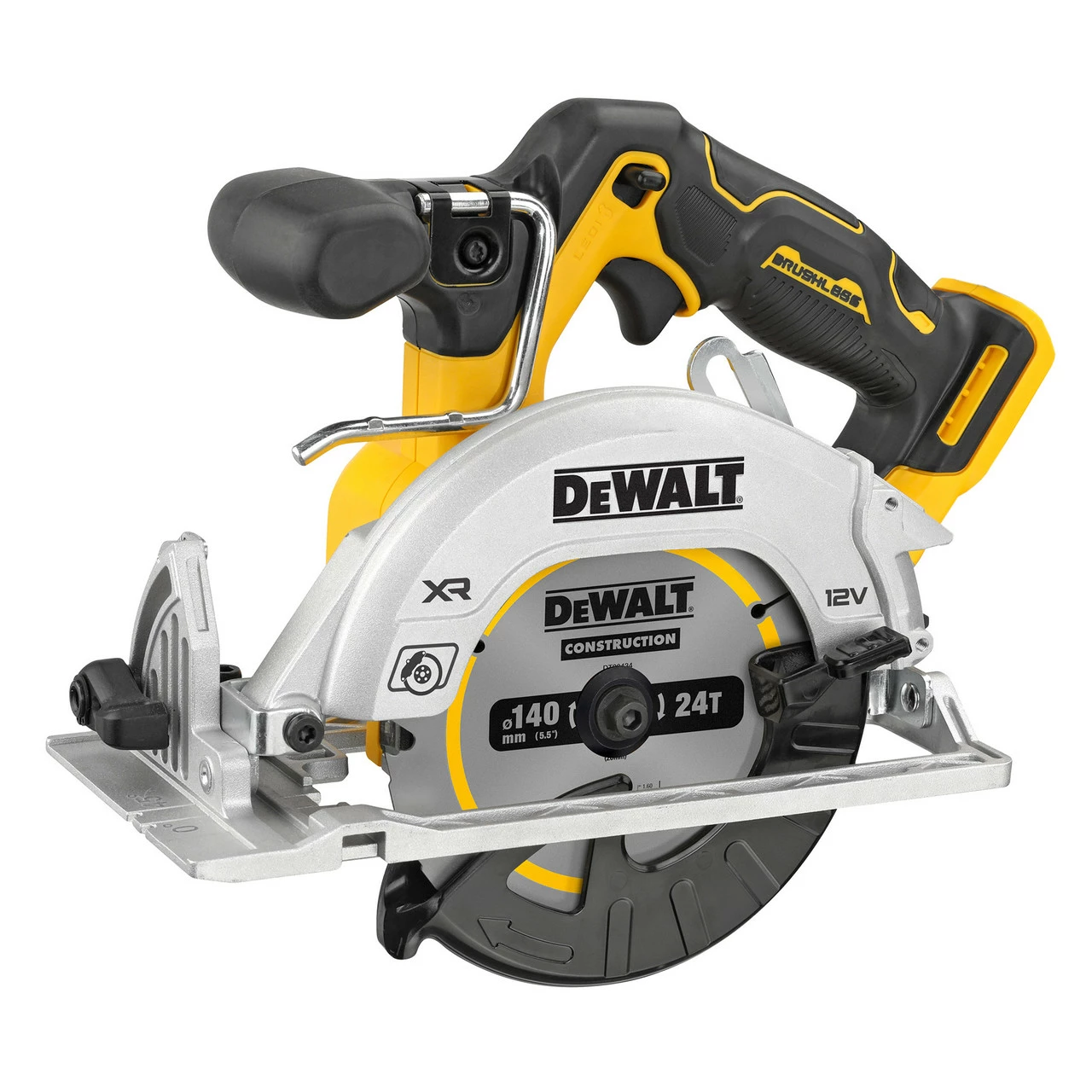 The Dewalt DCS512N 12V XR Circular Saw has a variable adjustment of the bevel angle to 50 degrees