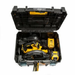 The DCS578T2 Dewalt Cordless Circular Saw is the perfect tool for professional carpenters and contractors who need a powerful and versatile saw for a variety of cutting tasks. The DCS578T2 features a brushless motor that delivers up to 47% more power than the previous model, making it ideal for cutting through tough materials like hardwood and plywood. It also has a large cutting capacity of 67mm at 90 degrees and 49mm at 45 degrees, so you can tackle even the most demanding jobs with ease. This Dewalt saw is also equipped with a number of features that make it safe and easy-to-use. It has an electronic brake that stops the blade quickly for added safety, as well as an integrated LED work light that illuminates the cut line for improved visibility. The saw also features a rubber overmolded grip for a comfortable and secure hold.