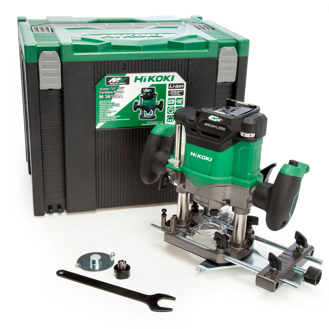 The HiKOKI M3612DAJ2Z is a Body-Only version of the World’s first-ever cordless 1/2″ router. It is designed to be powered by a 36V battery (not included), offering roughly 60 minutes runtime when routing plywood with an 8mm straight bit and 2.5Ah battery. It has a compact and lightweight design for smooth groove cutting, window cutting, shaping and more. It is faster than a corded router, compatible with 12, 8, 6mm or 1/2″, 1/4″ bits.