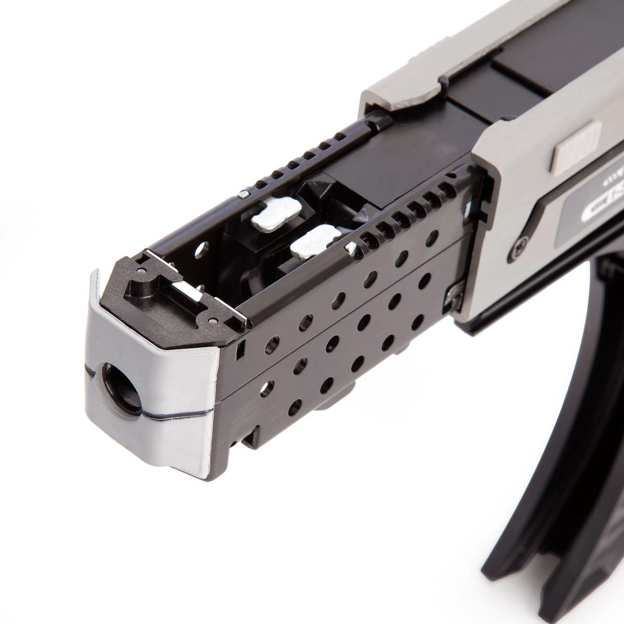 This Makita DFR750 Screwdriver gives high operation efficiency delivered from high rotational speed and improved screw strip management. It has been developed as the advanced model of the BFR440, now featuring greater durability for long life. Its stopper base with anti-tilt device prevents screws from swaying and foldable screw guide keeps the screw strip tangle-free. This machine is sold without a battery or charger in a cardboard carton.