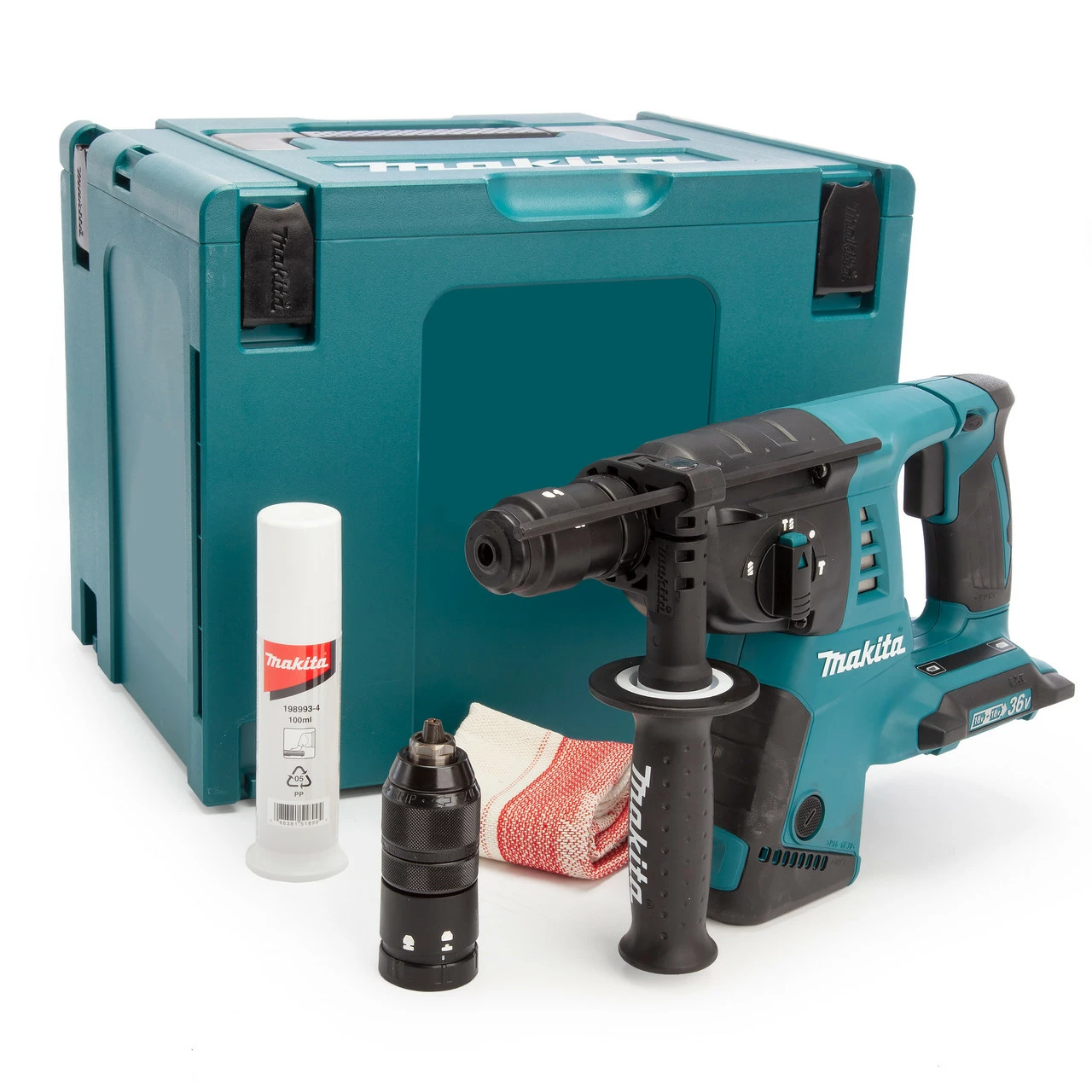 The Makita DHR264ZJ SDS+ rotary hammer drill is powered by 2 x 18V batteries in a series to supply energy to the powerful 36V motor. It is extremely lightweight and compact yet maintains the same easy handling and high manoeuvrability as the BHR262. It features 40 different bit angle settings and 3 different operation modes making it suitable for a wide variety of applications. The LED job light illuminates the workspace for precision every time.