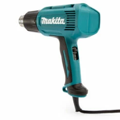 The Makita HG5030K 240V Heat Gun has a powerful 2 Speed 1600W motor that pumps out an airflow between 300 – 500 litres/min. The temperature varies between 350 – 500 ºC. It is simple to use with a comfortable grip handle. The machine has a flat end giving the option of free-standing in an upright position, leaving both hands free to manipulate a workpiece. It comes in a case along with 4 different nozzles. The glass protection nozzle prevents damage when stripping window frames. A reflector nozzle holds the heat around a pipe when soldering. The reduction nozzle concentrates the heat when welding plastic. A wide nozzle spreads the heat for thawing or drying. The HG5030 is the successor to 1,600W Heat Gun HG5012.