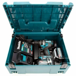 The Makita HP002G 40Vmax Combi Drill has a powerful brushless motor capable of producing up to 2,200 rpm and drilling up to 13mm in masonry. It has a keyless chuck for easy accessory changes and all-metal gear construction for maximum robustness and long life. The LED light illuminates the workpiece for enhanced precision. This HP002GA202 package comes with 2 x 2.0Ah 40Vmax Batteries, a DC40RA Fast Charger and a MakPac Connector Case.