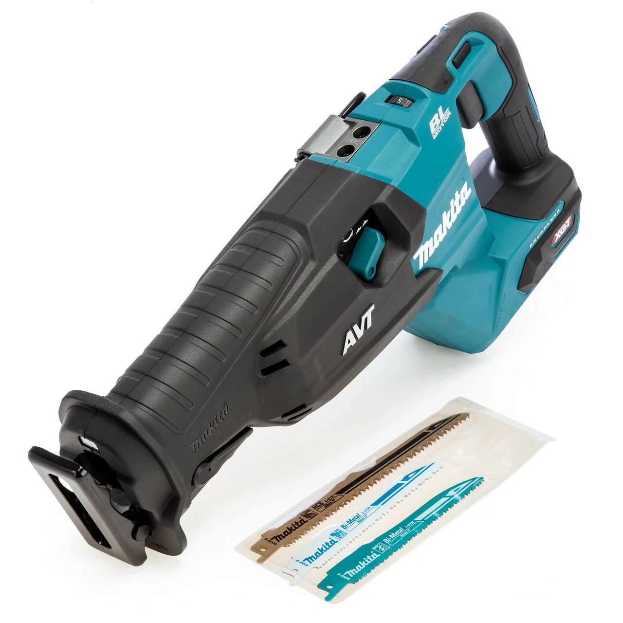 The Makita JR002GZ 40Vmax XGT Reciprocating Saw has anti-vibration housing and AVT for reduced operator fatigue