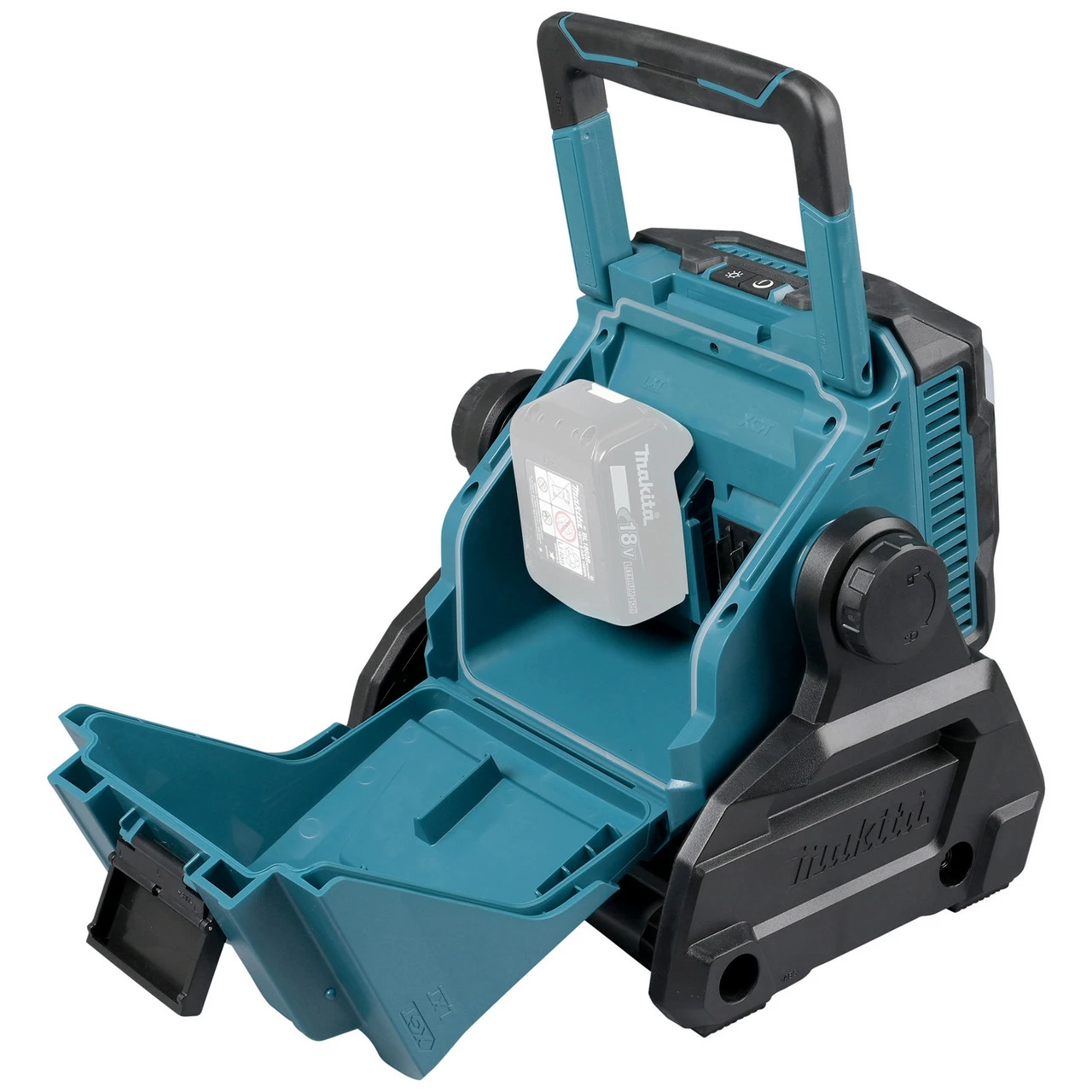 The Makita ML005G is a powerful Body Only Work Light that can be used with either 40V Max XGT batteries or 18V LXT batteries. The ML005G provides white light that is comparable to daylight and is equipped with 30 LEDs. The ML005G is easy to move around thanks to the sturdy folding carrying handle and is water and dust resistant making it suitable for use in harsh working conditions. The light has 3 brightness modes: low (900 Lumen), medium (1,800 Lm) and high (3,600 Lm). It is possible to tilt the construction lamp 240 degrees (-30 degrees to 210 degrees). Also includes stick-on anti-glare film. The light can be mounted on a work light tripod (not included) Not compatible with AC power. Sold without a battery or charger.