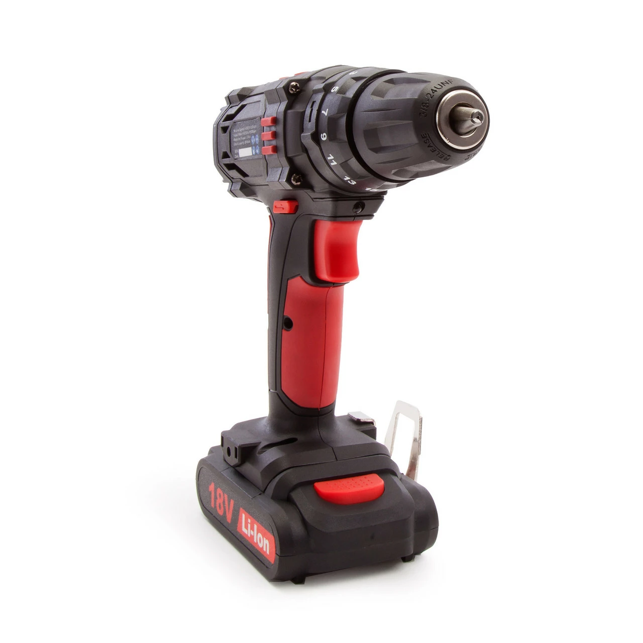 The Sealey CP18VLD Hammer Drill/Driver features a metal belt clip
