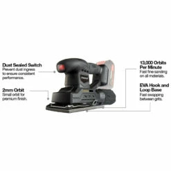 - 13000 Orbits Per minute – Fast fine sanding on all materials