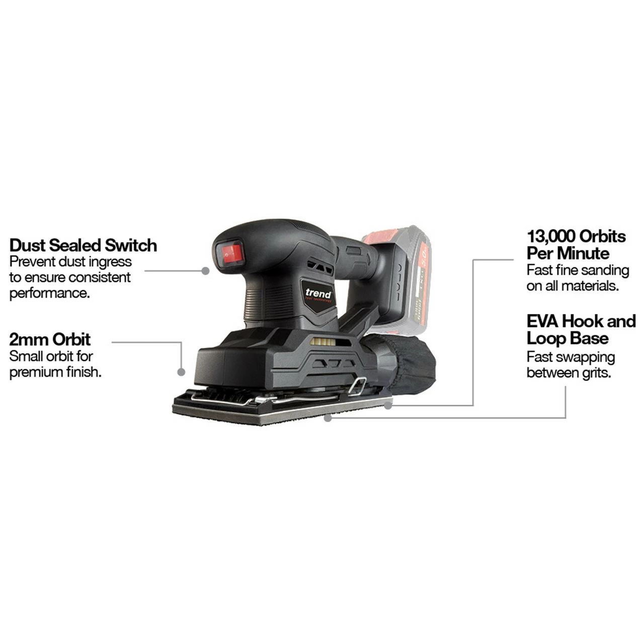 Trend T18S/TSSB 18V 1/3 Sheet Sander has a 2mm Orbit – Small orbits give a premium finish
